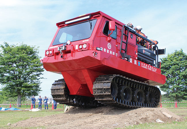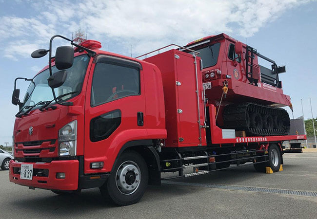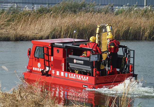 東日本大震災や九州北部豪雨等の教訓を踏まえ、津波や大規模風水害による浸水等の災害現場において迅速かつ的確に救助・救出活動を実施するために配備された中型水陸両用車及び搬送車。令和元年10月、大雨により孤立状態となった千葉県山武市の幼稚園から園児等約60名を救出した(同車両が配備された消防本部管内での活動)。