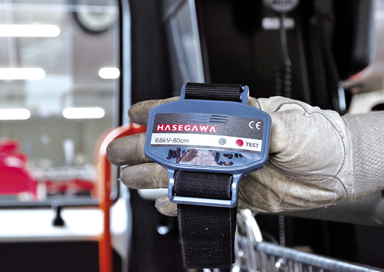 電流の流れている電線への接近を知らせる活線接近警報器。