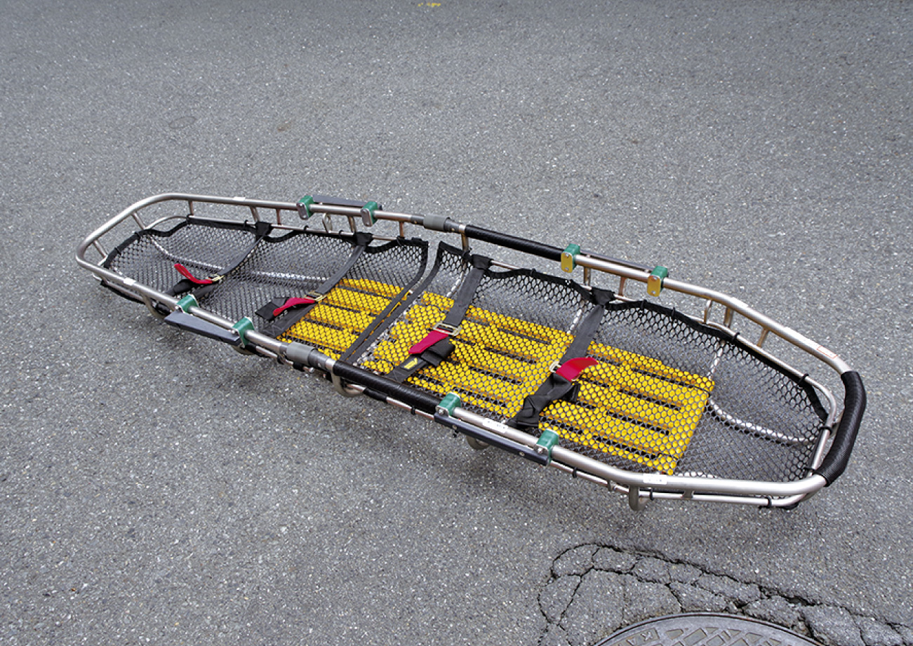 分割式バスケットストレッチャー。
