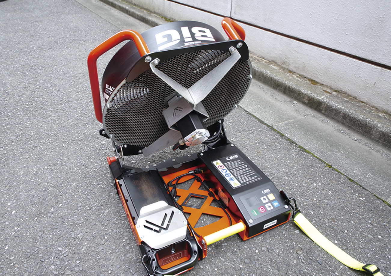 排煙に使用する可搬式ブロアー。