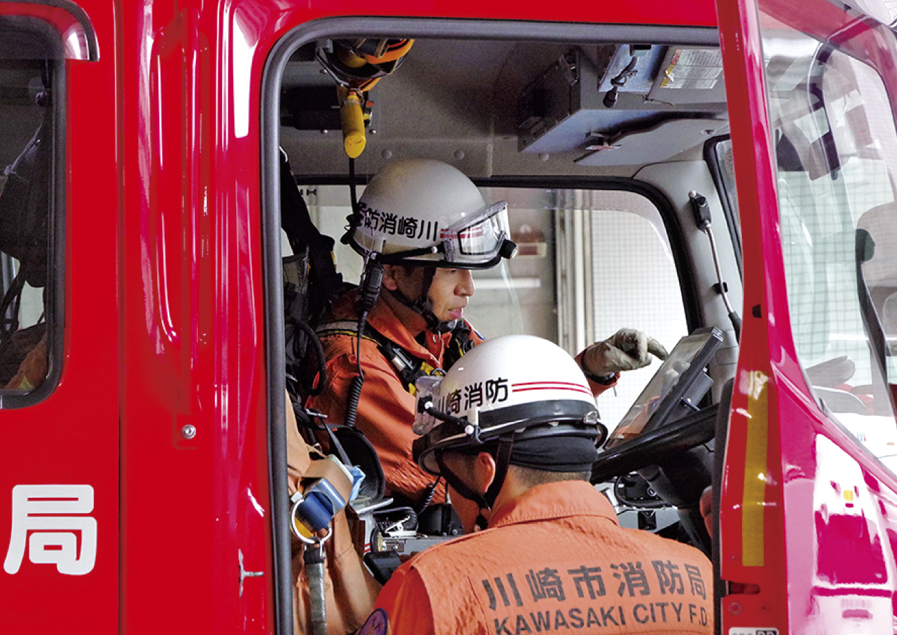 東海道の宿場町として栄えた川崎市は、古くから消防団、町内会・自治会を中心として防災意識が非常に高い地域。規模が大きく複合的な災害に対処するため、消防局と消防団は常に緊密な連携をとってさまざまな訓練を継続的に行っている。川崎消防団の特徴として外国人居住者が多いということから、外国籍や英語に堪能な機能別団員が在籍しているほか、女性の団員も多く、避難所運営や地域住民のケアなどで多様なニーズに応えられる体制が整っている。