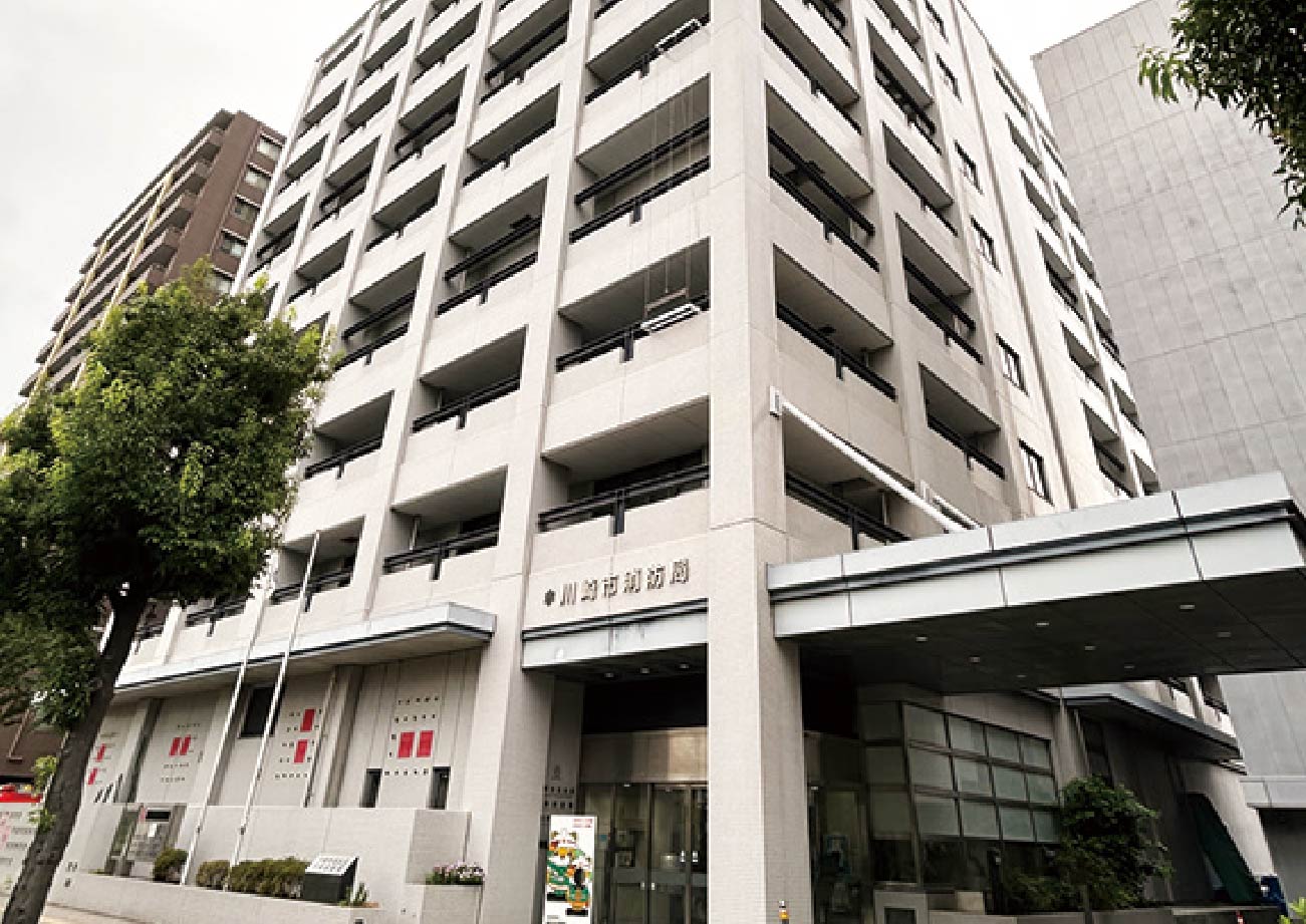 川崎市は北は多摩川を挟んで東京都、南は横浜市と隣接し、東の臨海部にはコンビナートが並ぶ。市内8消防署のなかで、川崎消防署の管轄エリアは一番狭いが、市の玄関口である川崎駅をはじめ、市内最大の繁華街や大規模な地下街、公営競技場があり、出場件数も多い。