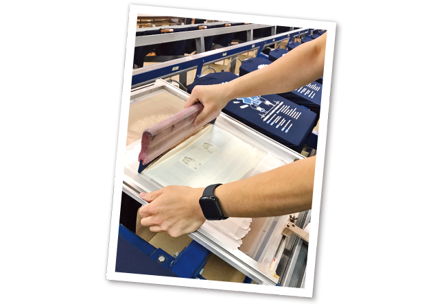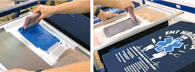 スキージーに掛ける力加減を調節しながら、スピーディーかつ美しくインクを乗せていきます。
