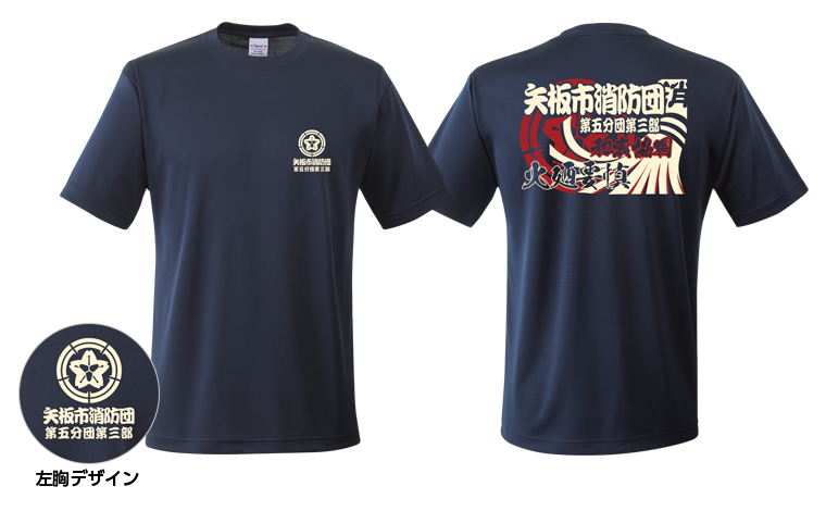 私達の部では今までオリジナルウェアを作ったことがありませんでした。操法で優勝を機に作成する流れはありましたが、コロナ禍により消防団の活動も自粛を余儀なくされ、オリジナルウェア作成もなくなりました。本年度に入り、操法大会ではありませんが、放水点検という形で操法を披露する場が復活したため、団員の士気、団結力を上げるためにもオリジナルウェアを作成することとなりました。